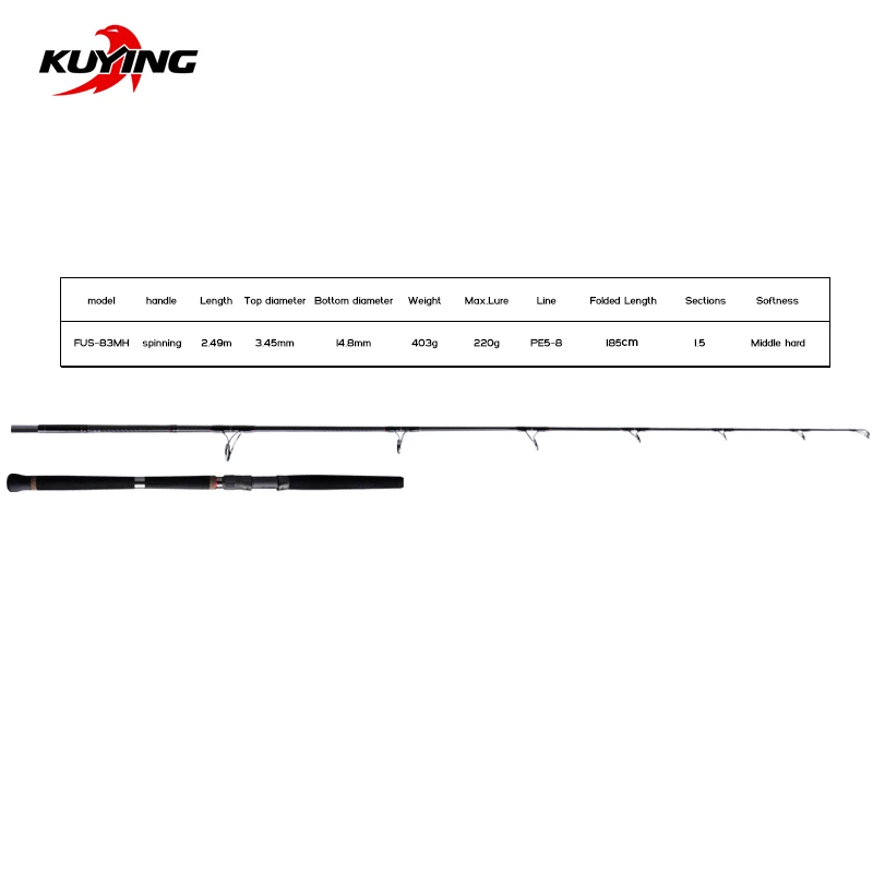 Hurry over - KUYING ULUA Popper Popping Rod 2.49m 8'3" Spinning Fishing Lure Rod Cane Stick MH Carbon Ocean Fish Max Lure 220g 1.5 Butt Joint